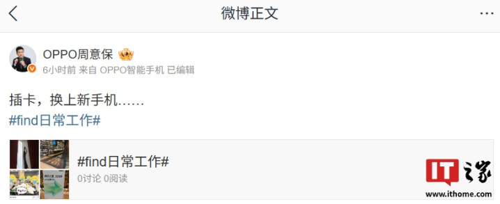 IT之家8月26日消息配资查查,OPPOFind系列产品负责人周意保今日官宣换上了新手机,其微博小尾巴已显示为“OPPO智能手机”。值得一提的是,他微博所带的话题为“find工作日常”,因此吸引了网友前来挖料。